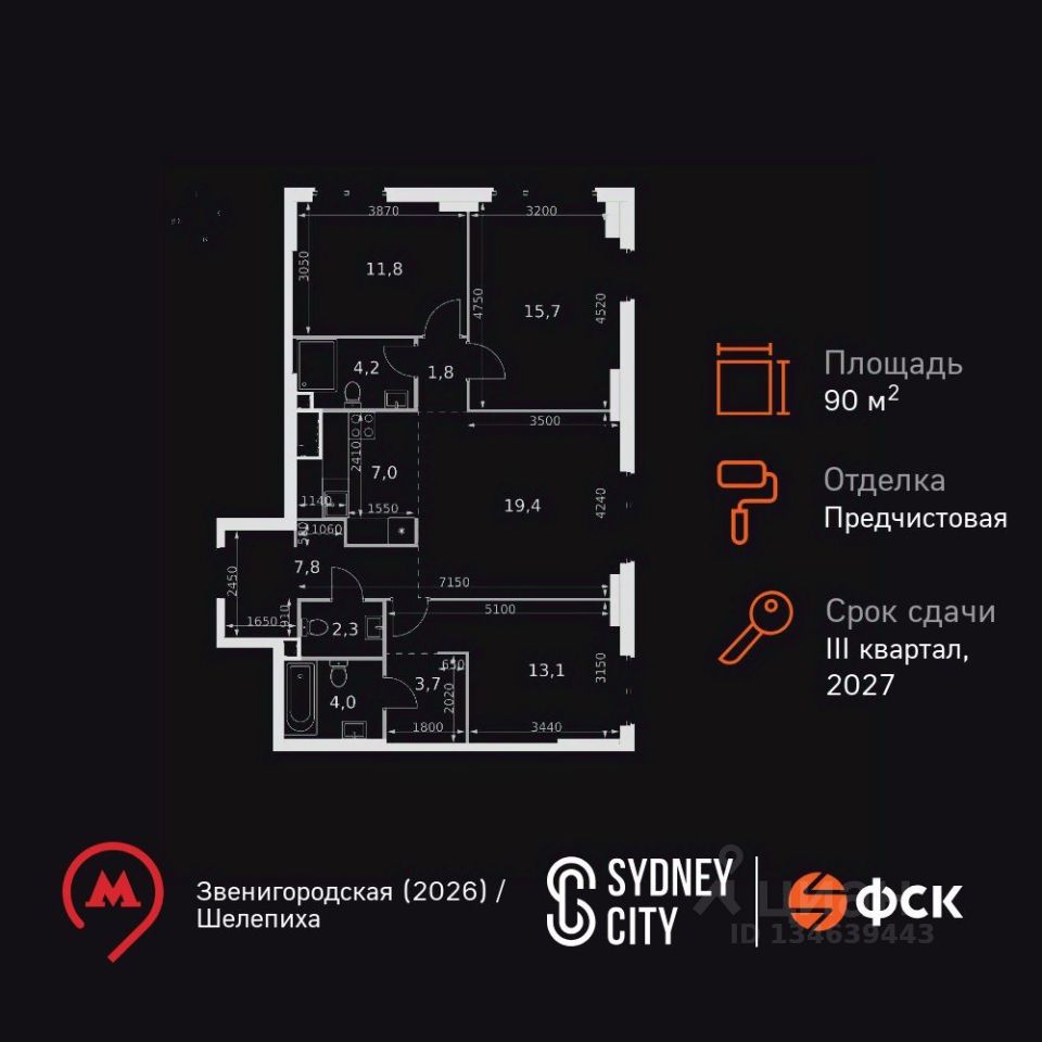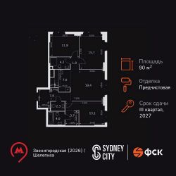 Продаётся 4-к квартира номер 561 общей площадью 90.8 кв.м. на 11-м этаже 42 этажного здания. Отделка Whitebox. Цена с учётом скидки.