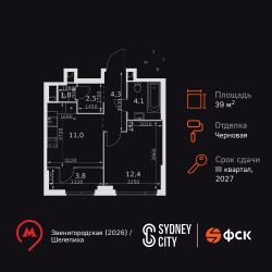 Продаётся 1-к квартира номер 590 общей площадью 39.1 кв.м. на 13-м этаже 42 этажного дома. Отделка Whitebox. Цена с учётом скидки!