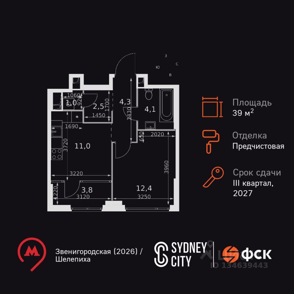 Продаётся 1-к квартира номер 590 общей площадью 39.1 кв.м. на 13-м этаже 42 этажного здания. Отделка Whitebox. Цена с учётом скидки.