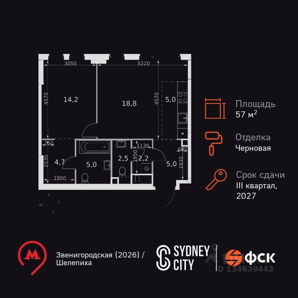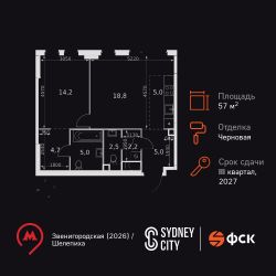 Продаётся 2-к квартира номер 607 общей площадью 57.4 кв.м. на 15-м этаже 42 этажного дома. Отделка Whitebox. Цена с учётом скидки!
