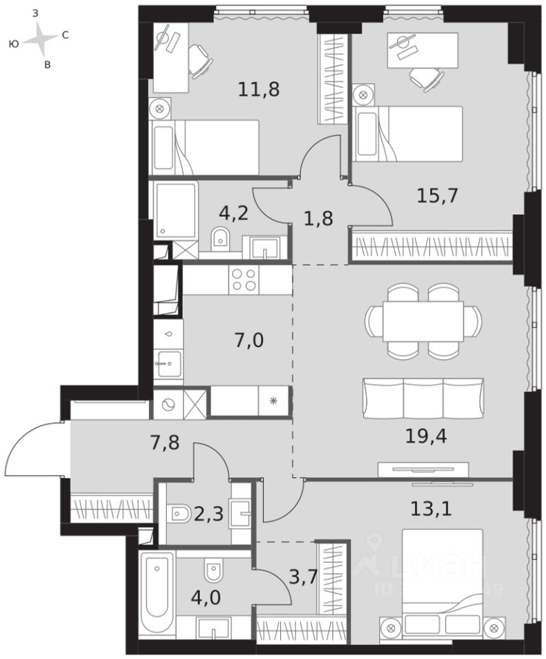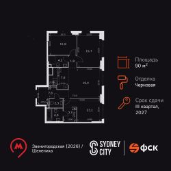 Продаётся 4-к квартира номер 609 общей площадью 90.8 кв.м. на 15-м этаже 42 этажного дома. Отделка Whitebox. Цена с учётом скидки!