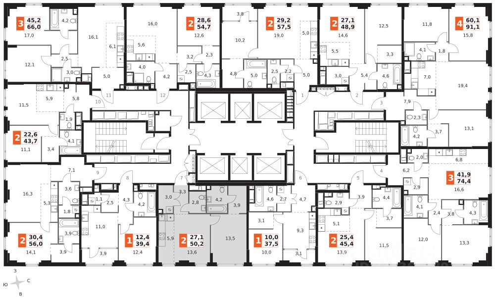 Продаётся 2-к квартира номер 661 общей площадью 50.2 кв.м. на 19-м этаже 42 этажного здания. Без отделки. Цена с учётом скидки.