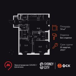 Продаётся 3-к квартира номер 670 общей площадью 74.3 кв.м. на 20-м этаже 42 этажного дома. Без отделки. Цена с учётом скидки!