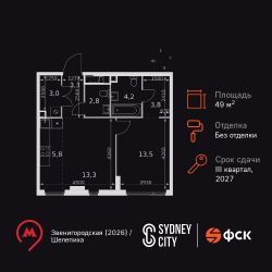 Продаётся 2-к квартира номер 493 общей площадью 49.7 кв.м. на 5-м этаже 42 этажного дома. Без отделки. Цена с учётом скидки!