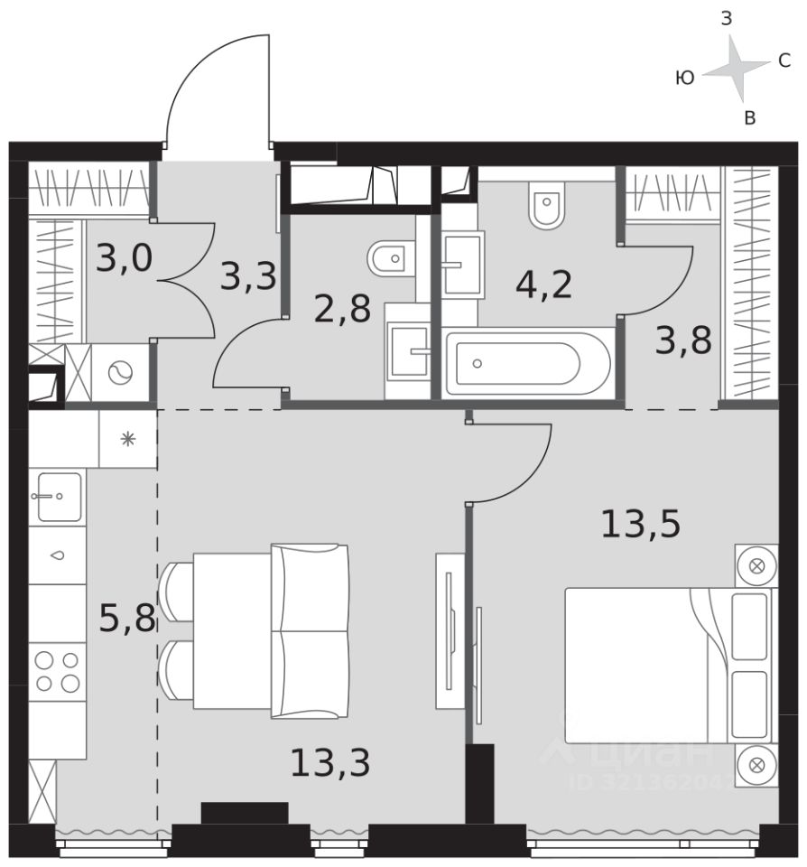 - Мастер-зона с санузлом и гардеробной. Всё для вашего комфорта и удобства, включая личный санузел и гардероб.
