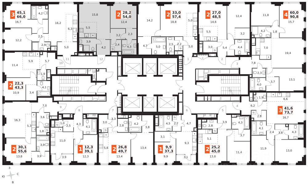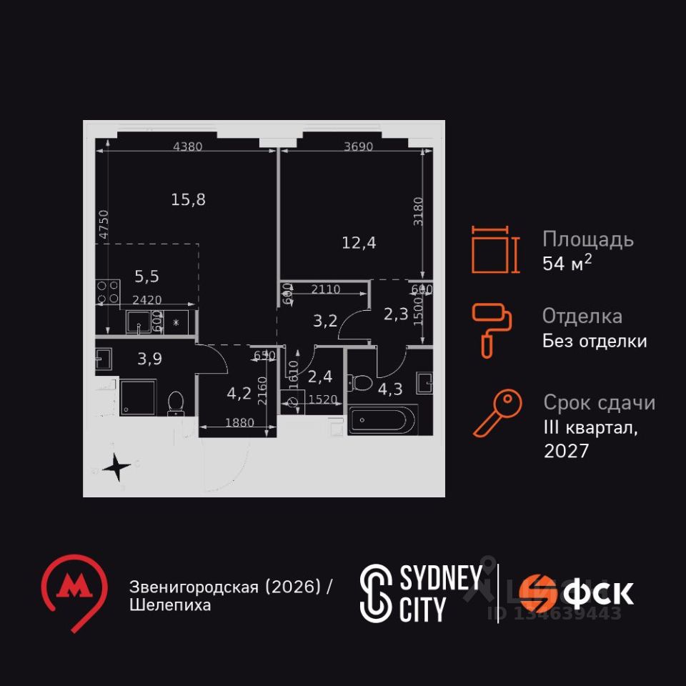 Продаётся 2-к квартира номер 486 общей площадью 54 кв.м. на 4-м этаже 42 этажного дома. Без отделки. Цена с учётом скидки!