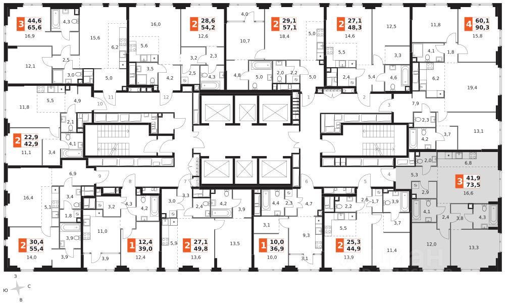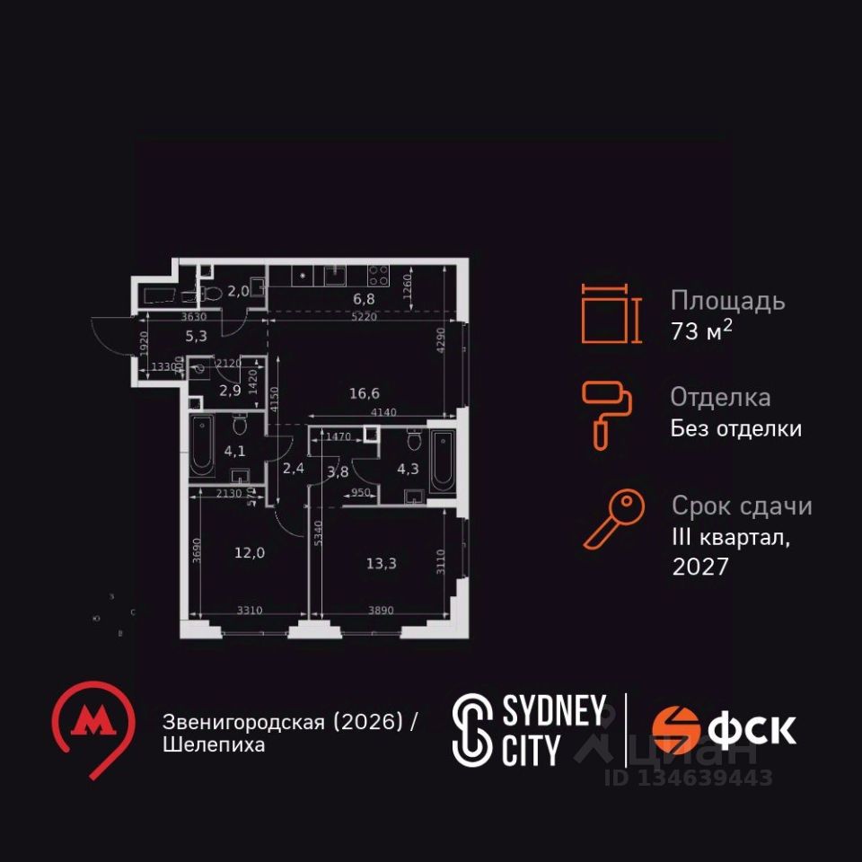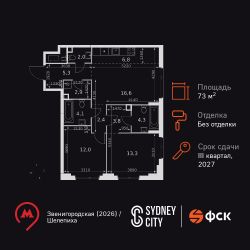 Продаётся 3-к квартира номер 742 общей площадью 73.5 кв.м. на 26-м этаже 42 этажного здания. Без отделки. Цена с учётом скидки.