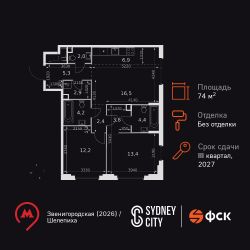 Продаётся 3-к квартира номер 814 общей площадью 74 кв.м. на 32-м этаже 42 этажного дома. Без отделки. Цена с учётом скидки!