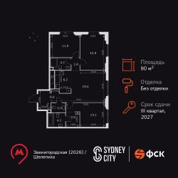 Продаётся 4-к квартира номер 825 общей площадью 90.5 кв.м. на 33-м этаже 42 этажного здания. Без отделки. Цена с учётом скидки.