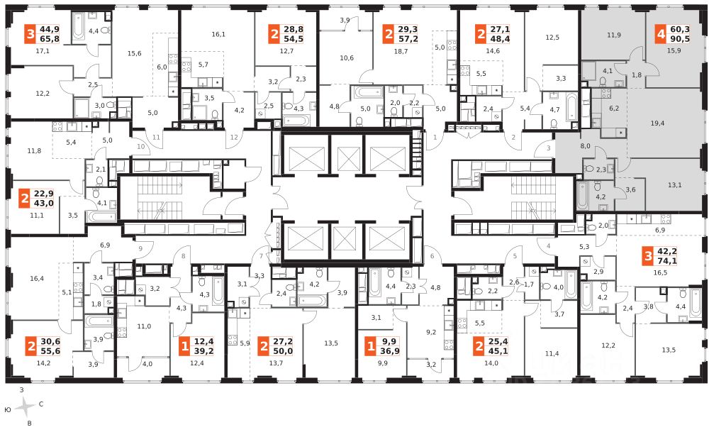 Продаётся 4-к квартира номер 861 общей площадью 90.5 кв.м. на 36-м этаже 42 этажного дома. Без отделки. Цена с учётом скидки!
