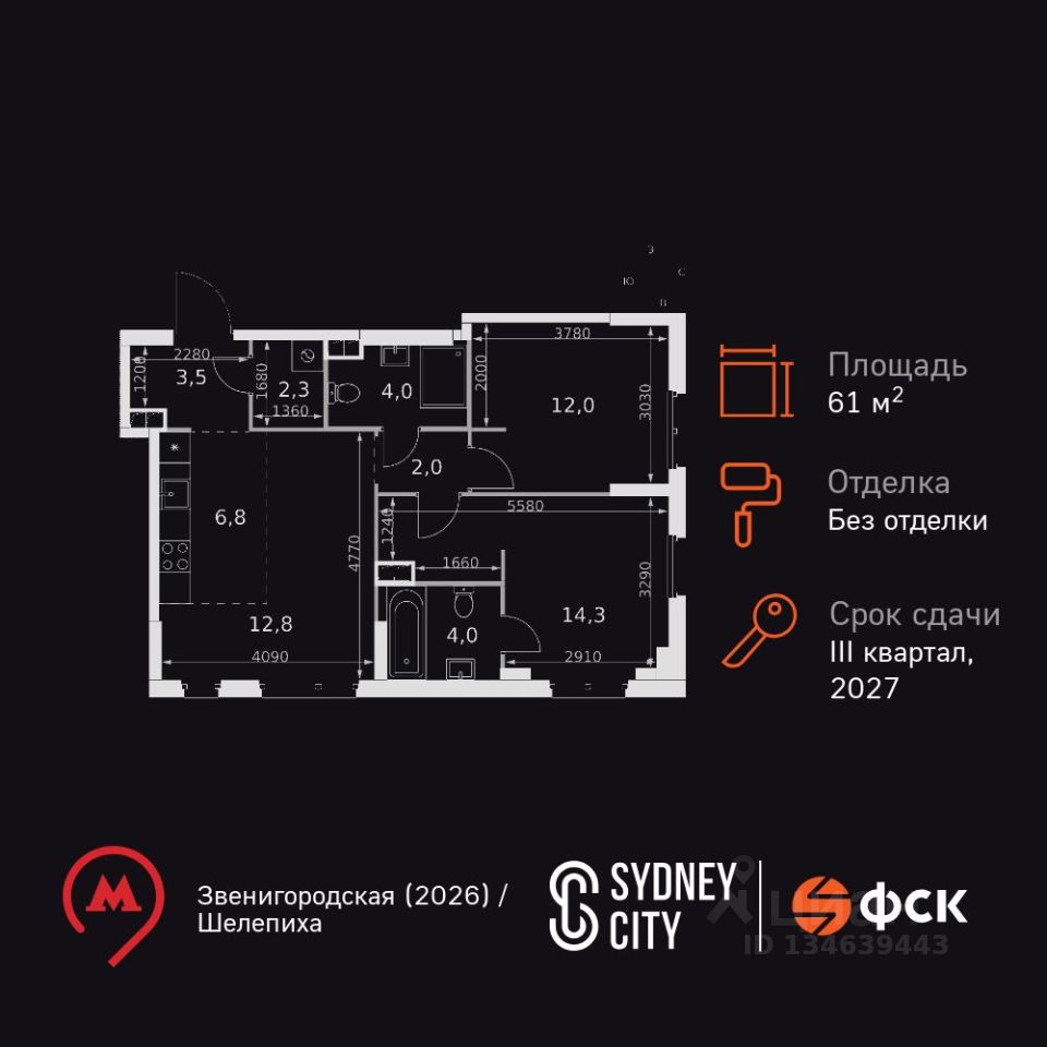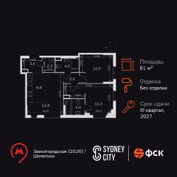 Продаётся 3-к квартира номер 220 общей площадью 61.7 кв.м. на 2-м этаже 27 этажного здания. Без отделки. Цена с учётом скидки.