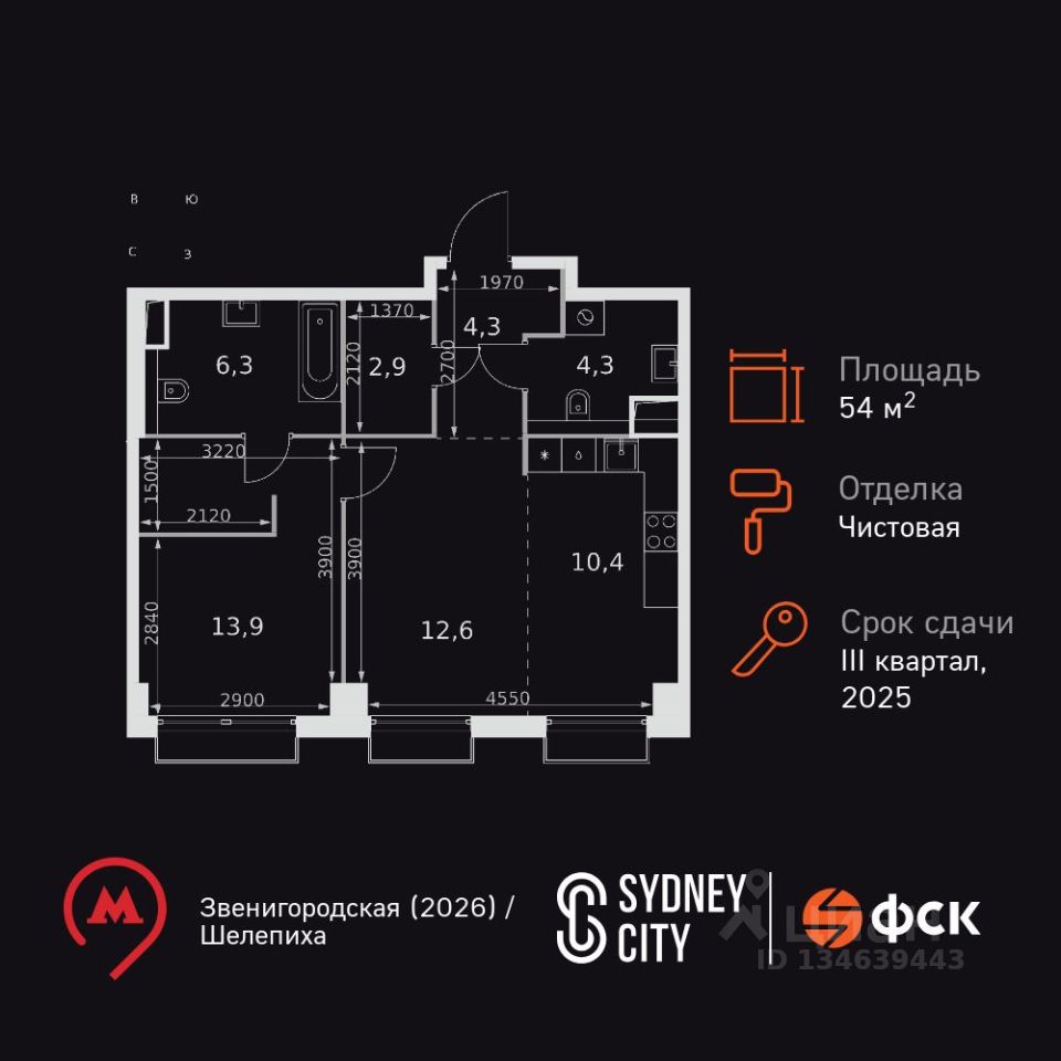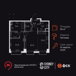 Продаётся 2-к квартира номер 302 общей площадью 54.7 кв.м. на 2-м этаже 43 этажного здания. Чистовая отделка. Цена с учётом скидки.
