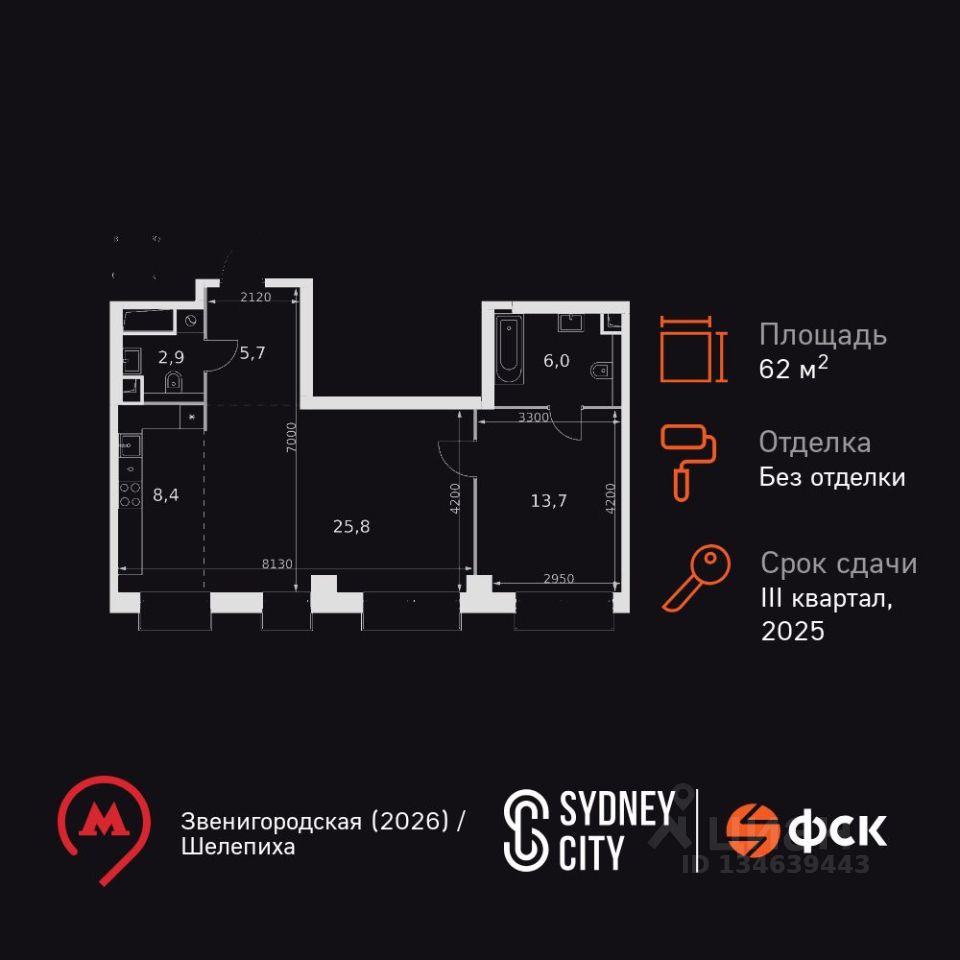 Продаётся 2-к квартира номер 570 общей площадью 62.5 кв.м. на 29-м этаже 43 этажного здания. Без отделки. Цена с учётом скидки.