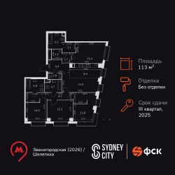 Продаётся 5-к квартира номер 593 общей площадью 113.7 кв.м. на 32-м этаже 43 этажного здания. Без отделки. Цена с учётом скидки.