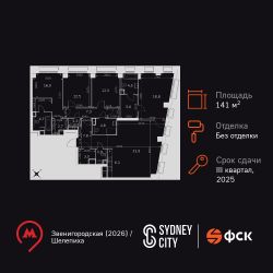 Продаётся 5-к квартира номер 656 общей площадью 141.6 кв.м. на 40-м этаже 43 этажного здания. Без отделки. Цена с учётом скидки.