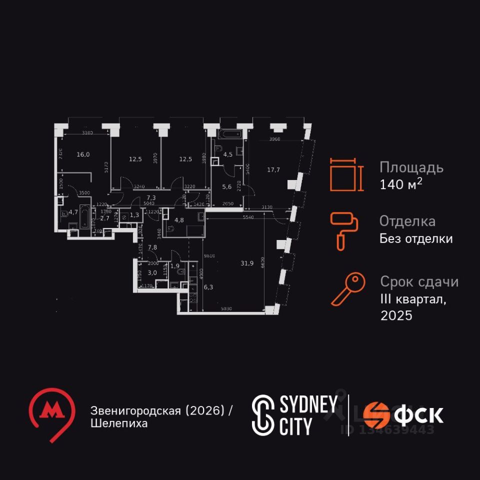 Продаётся 5-к квартира номер 671 общей площадью 140.5 кв.м. на 42-м этаже 43 этажного здания. Без отделки. Цена с учётом скидки.