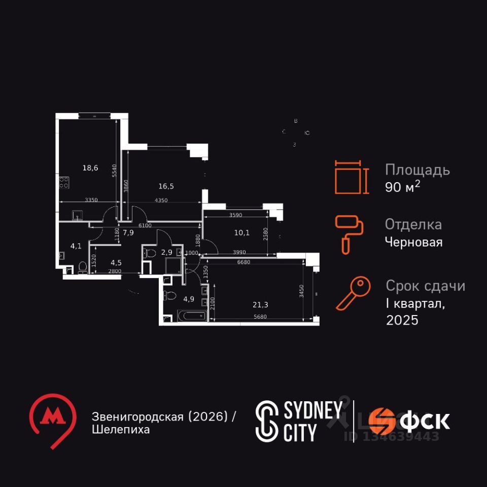 Продаётся 3-к квартира номер 363 общей площадью 90.8 кв.м. на 15-м этаже 44 этажного дома. Отделка Whitebox. Цена с учётом скидки!
