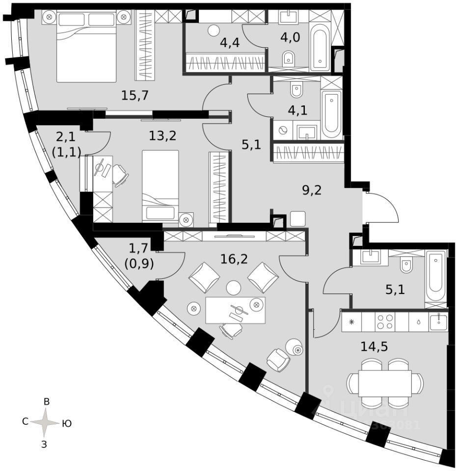 - Мастер-зона с санузлом и гардеробной. Всё для вашего комфорта и удобства, включая личный санузел и гардероб.