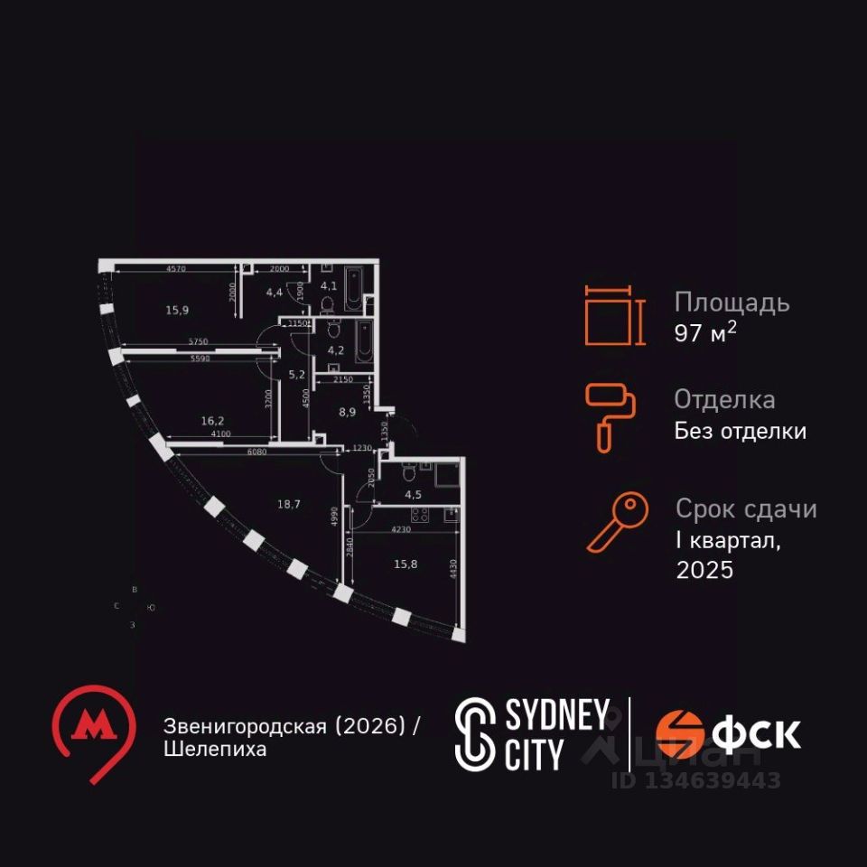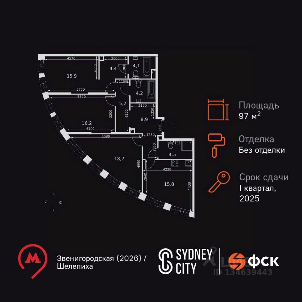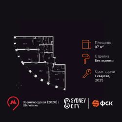Продаётся 3-к квартира номер 490 общей площадью 97.3 кв.м. на 33-м этаже 44 этажного здания. Без отделки. Цена с учётом скидки.