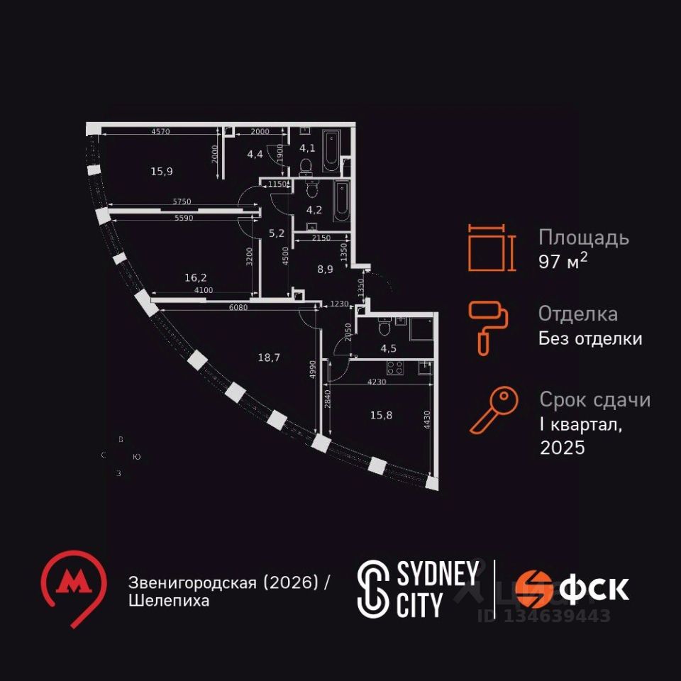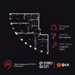 Продаётся 3-к квартира номер 510 общей площадью 97.3 кв.м. на 37-м этаже 44 этажного дома. Без отделки. Цена с учётом скидки!