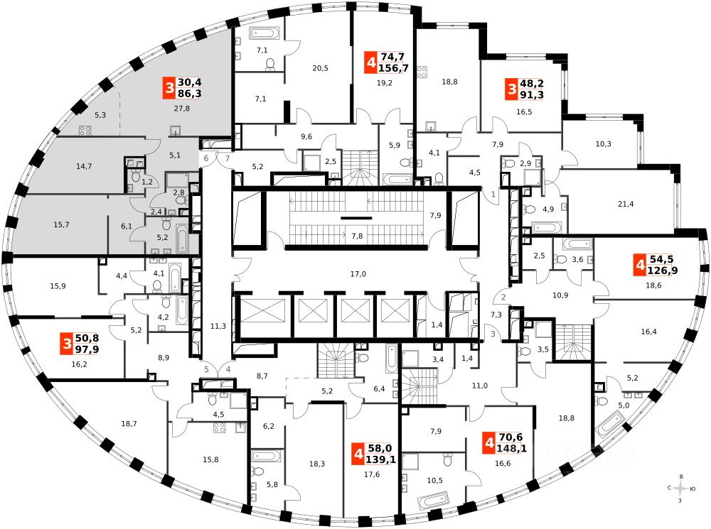 Продаётся 3-к квартира номер 515 общей площадью 86.1 кв.м. на 38-м этаже 44 этажного дома. Без отделки. Цена с учётом скидки!