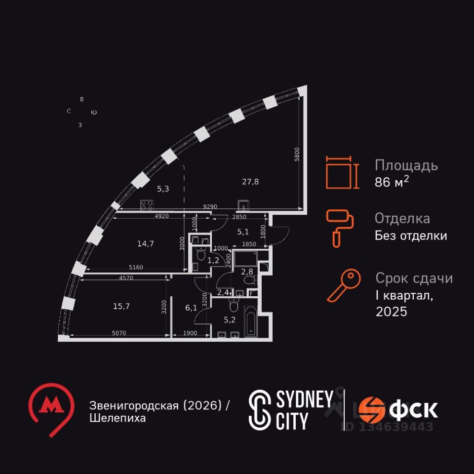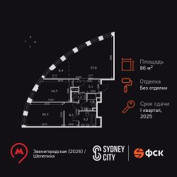Продаётся 3-к квартира номер 515 общей площадью 86.1 кв.м. на 38-м этаже 44 этажного здания. Без отделки. Цена с учётом скидки.