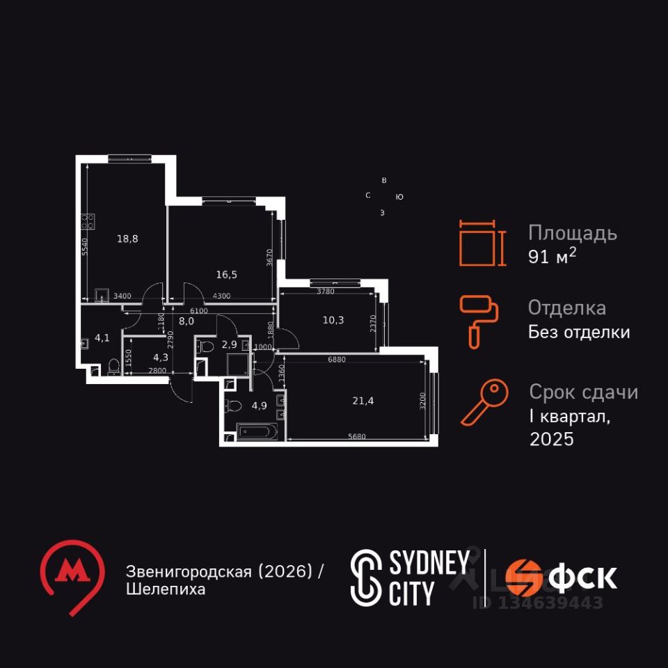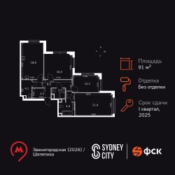 Продаётся 3-к квартира номер 526 общей площадью 91.3 кв.м. на 41-м этаже 44 этажного здания. Без отделки. Цена с учётом скидки.