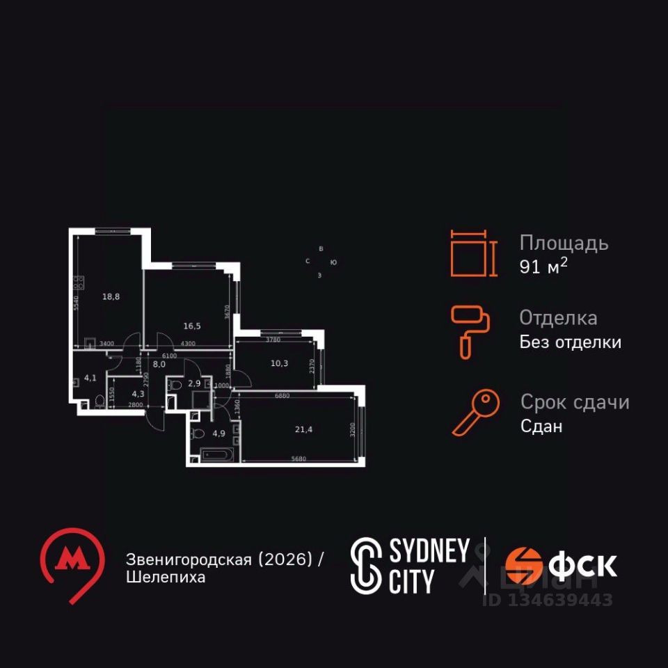 Продаётся 3-к квартира номер 536 общей площадью 91.3 кв.м. на 43-м этаже 44 этажного здания. Без отделки. Цена с учётом скидки.
