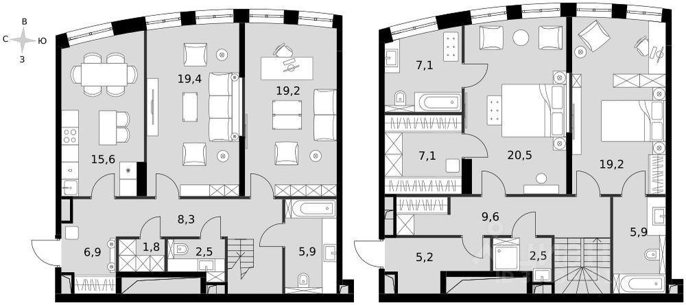 - Мастер-зона с санузлом и гардеробной. Всё для вашего комфорта и удобства, включая личный санузел и гардероб.