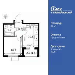 Продаётся 1-к квартира номер 82 общей площадью 30.6 кв.м. на 13-м этаже 24 этажного здания. Отделка Whitebox. Цена с учётом скидки.