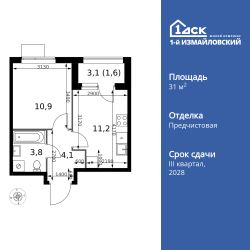 Продаётся 1-к квартира номер 99 общей площадью 31.6 кв.м. на 16-м этаже 24 этажного здания. Отделка Whitebox. Цена с учётом скидки.