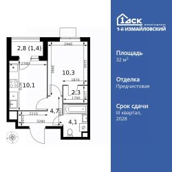 Продаётся 1-к квартира номер 58 общей площадью 32.9 кв.м. на 10-м этаже 24 этажного здания. Отделка Whitebox. Цена с учётом скидки.