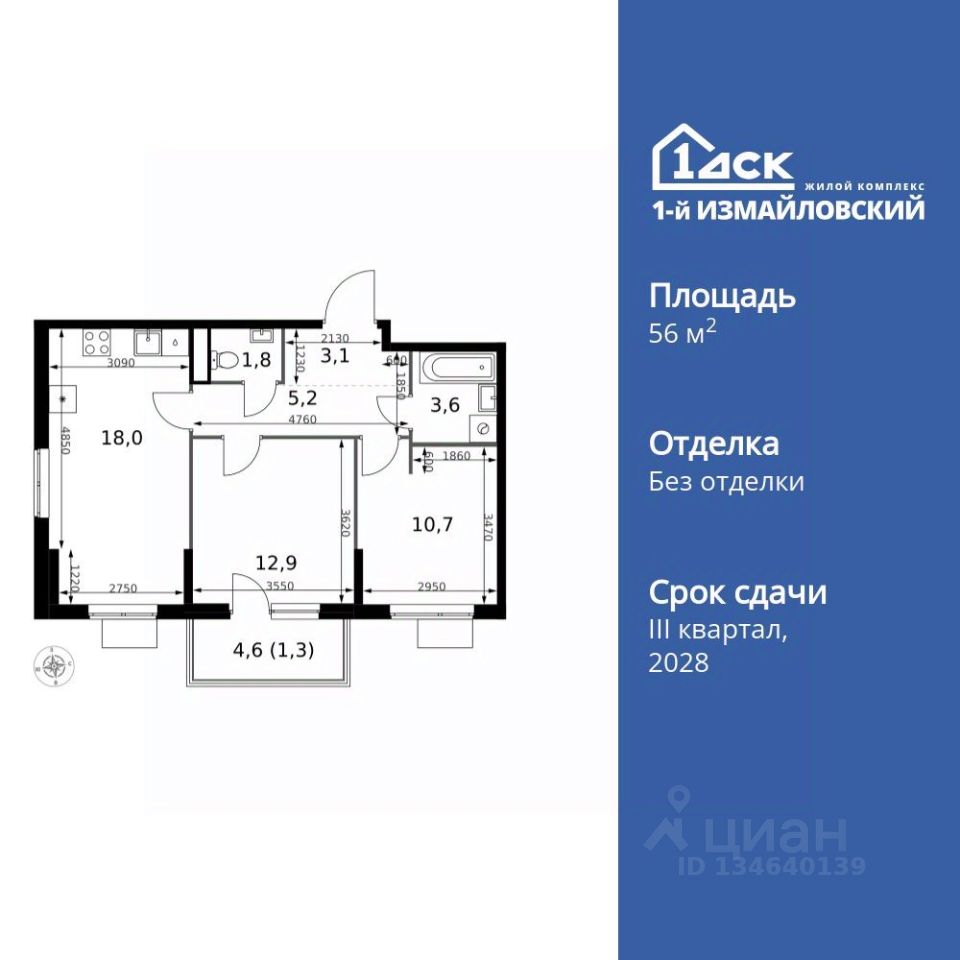 Продаётся 2-к квартира номер 160 общей площадью 56.6 кв.м. на 24-м этаже 24 этажного здания. Без отделки. Цена с учётом скидки.