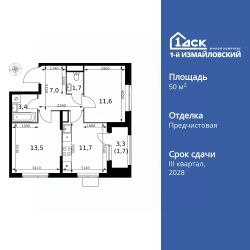 Продаётся 2-к квартира номер 212 общей площадью 50.6 кв.м. на 8-м этаже 25 этажного здания. Отделка Whitebox. Цена с учётом скидки.