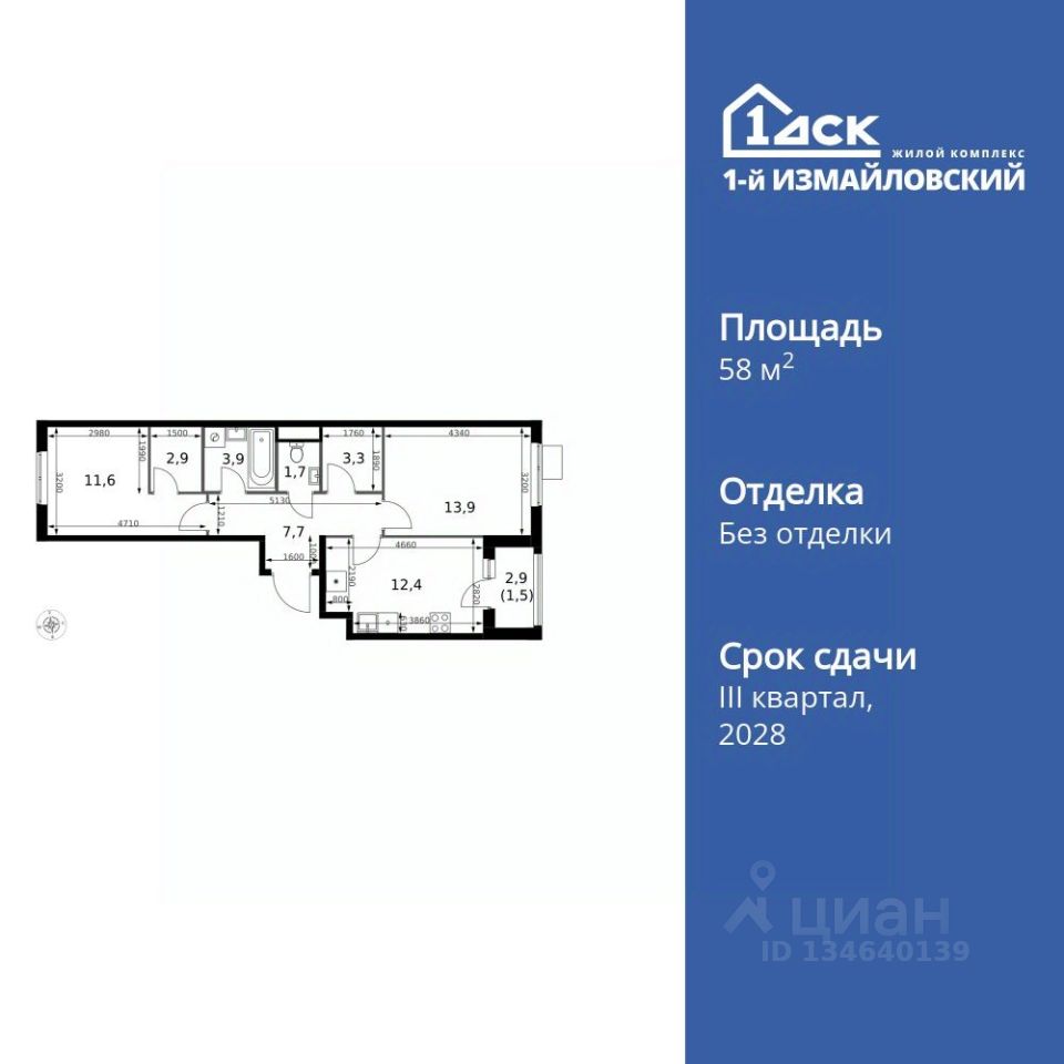 Продаётся 2-к квартира номер 170 общей площадью 58.9 кв.м. на 3-м этаже 25 этажного здания. Без отделки. Цена с учётом скидки.