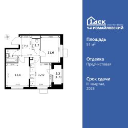 Продаётся 2-к квартира номер 284 общей площадью 51 кв.м. на 18-м этаже 25 этажного здания. Отделка Whitebox. Цена с учётом скидки.