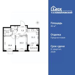 Продаётся 2-к квартира номер 251 общей площадью 46 кв.м. на 13-м этаже 25 этажного здания. Отделка Whitebox. Цена с учётом скидки.