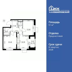 Продаётся 2-к квартира номер 270 общей площадью 51 кв.м. на 16-м этаже 25 этажного здания. Отделка Whitebox. Цена с учётом скидки.
