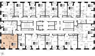 Продаётся 2-к квартира номер 515 общей площадью 46.7 кв.м. на 8-м этаже 32 этажного здания. Без отделки.