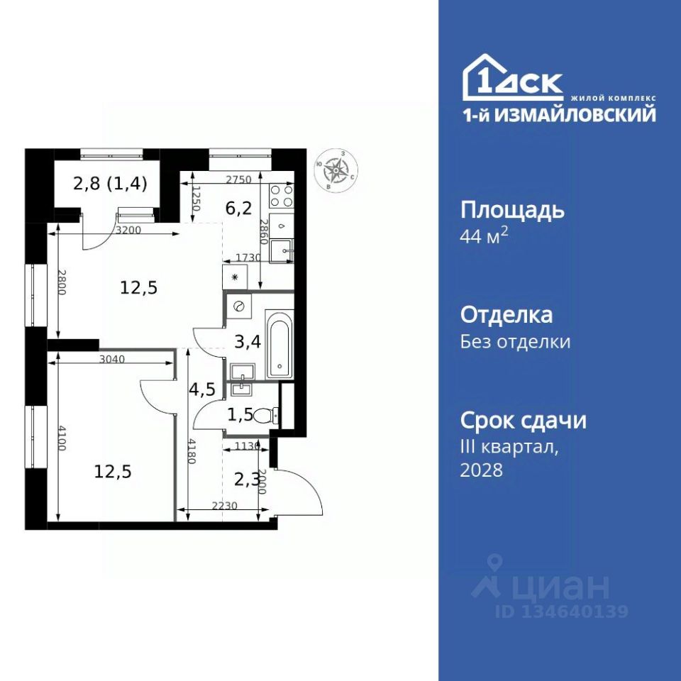 Продаётся 2-к квартира номер 427 общей площадью 44.3 кв.м. на 2-м этаже 32 этажного здания. Без отделки.