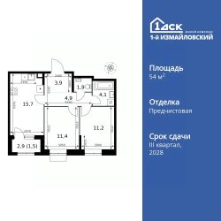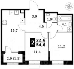 Продаётся 2-к квартира номер 678 общей площадью 54.6 кв.м. на 19-м этаже 32 этажного дома. Отделка Whitebox.