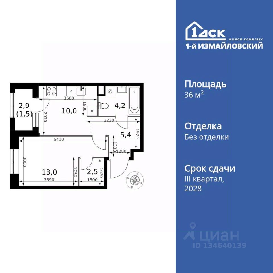 Продаётся 1-к квартира номер 726 общей площадью 36.6 кв.м. на 22-м этаже 32 этажного здания. Без отделки.