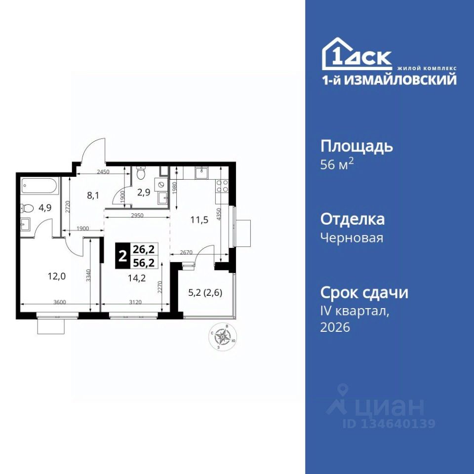 Продаётся 2-к квартира номер 477 общей площадью 56.2 кв.м. на 16-м этаже 23 этажного дома. Отделка Whitebox. Цена с учётом скидки!