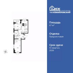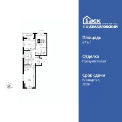 Продаётся 3-к квартира номер 523 общей площадью 67 кв.м. на 22-м этаже 23 этажного здания. Отделка Whitebox. Цена с учётом скидки.