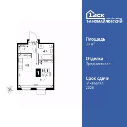 Продаётся квартира-студия номер 713 общей площадью 30 кв.м. на 15-м этаже 15 этажного здания. Отделка Whitebox. Цена с учётом скидки.