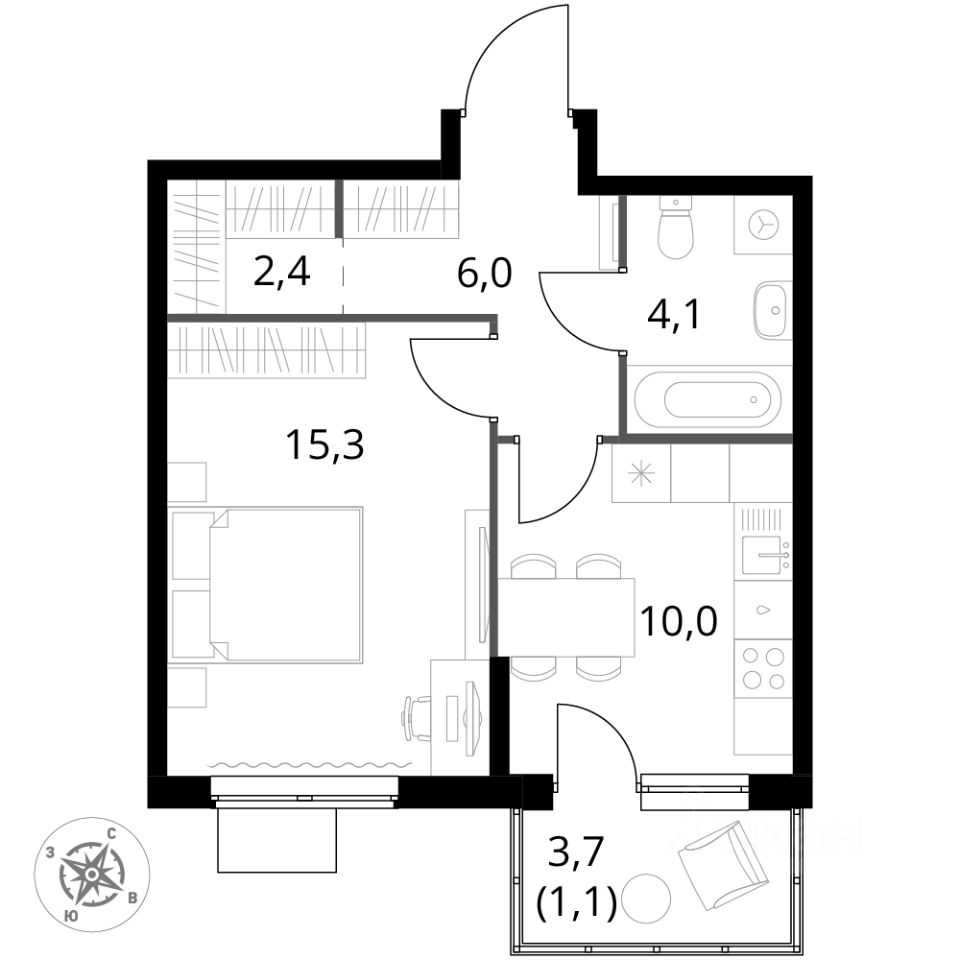 Продаётся 1-к квартира номер 714 общей площадью 38.9 кв.м. на 15-м этаже 15 этажного дома. Отделка Whitebox. Цена с учётом скидки!