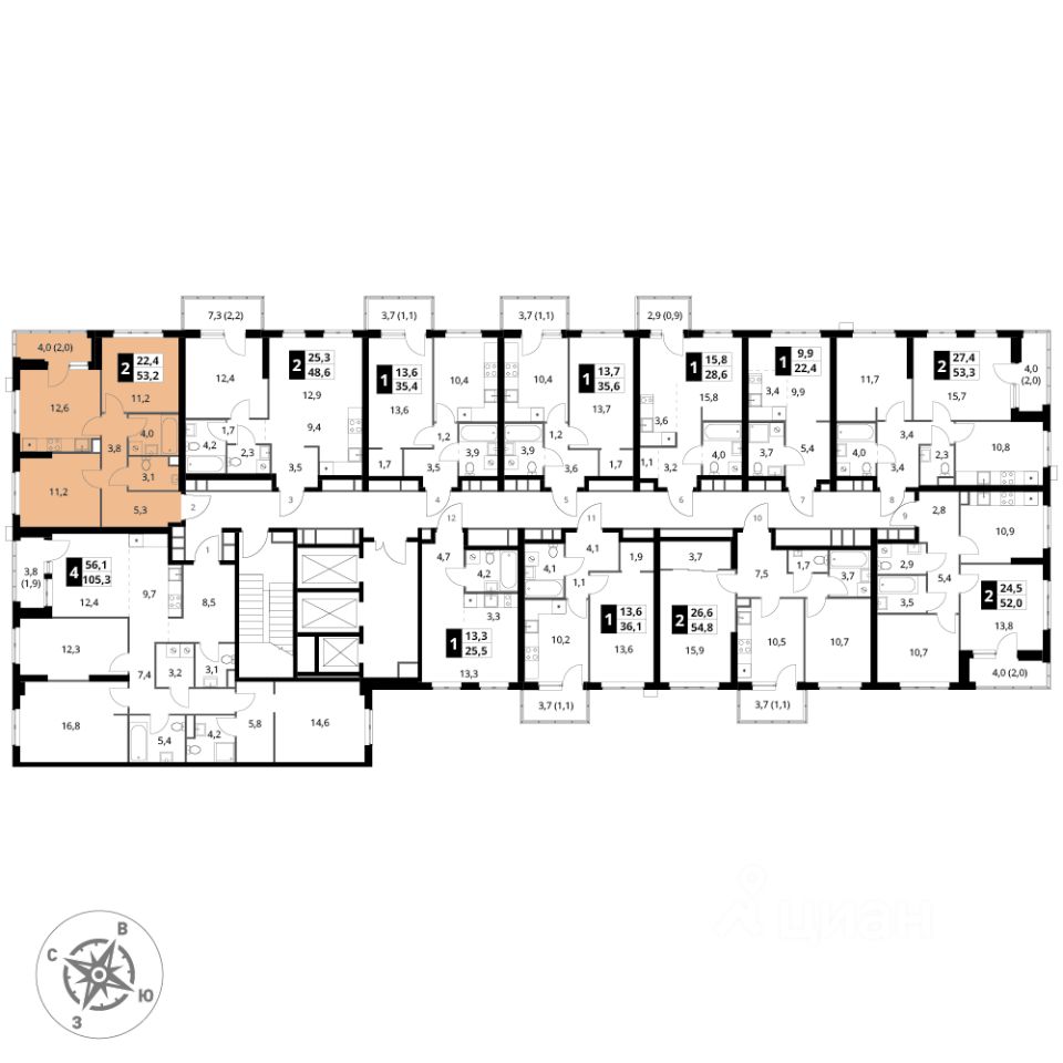Продаётся 2-к квартира номер 2 общей площадью 53.2 кв.м. на 2-м этаже 25 этажного дома. Отделка Whitebox. Цена с учётом скидки!