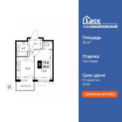 Продаётся 1-к квартира номер 167 общей площадью 36.6 кв.м. на 15-м этаже 25 этажного здания. Чистовая отделка. Цена с учётом скидки.
