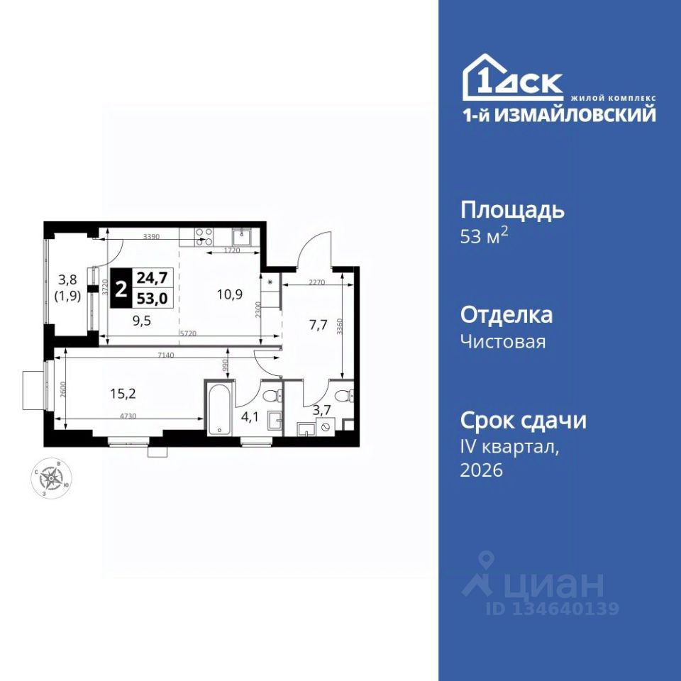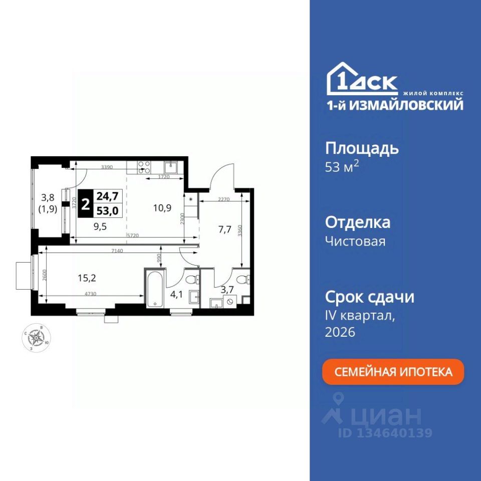 Продаётся 2-к квартира номер 277 общей площадью 53 кв.м. на 25-м этаже 25 этажного здания. Чистовая отделка. Цена с учётом скидки.