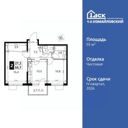 Продаётся 2-к квартира номер 286 общей площадью 55.7 кв.м. на 25-м этаже 25 этажного дома. Чистовая отделка. Цена с учётом скидки!
